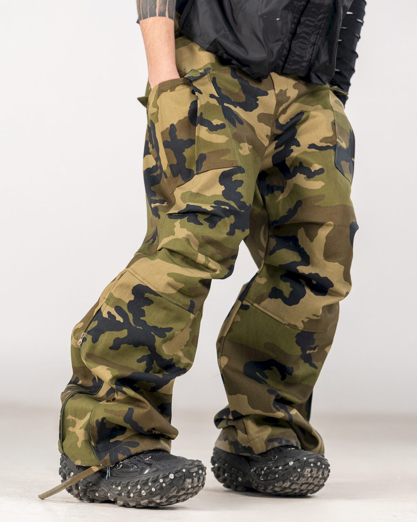 شلوار بگ چریکی با زیپ تنظیم دمپا جنس پارچه ترک مستر کوالیتی با طراحی چیریکی برای دوست داران به استایل خیابانی و طبیعت گردی روزمره است. رنگ چریکی (مشکی و سبز) این شلوار جلوه‌ای جذاب به استایل شما می‌بخشد و به‌ راحتی با تی‌شرت یا هودی ست می‌شود.