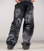 این ترکیب باعث می‌شود هم «لش بودن» شلوار حفظ شود و هم جذابیت چاپ صلیب کاملاً دیده شود.